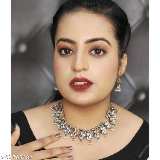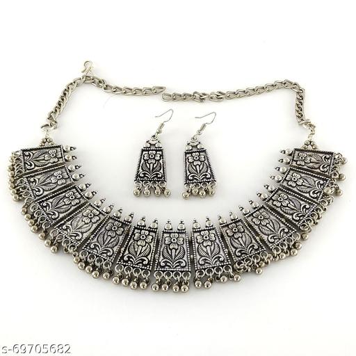 Antique Silver Oxidised Necklace Set Around The Neck For Women And Girls