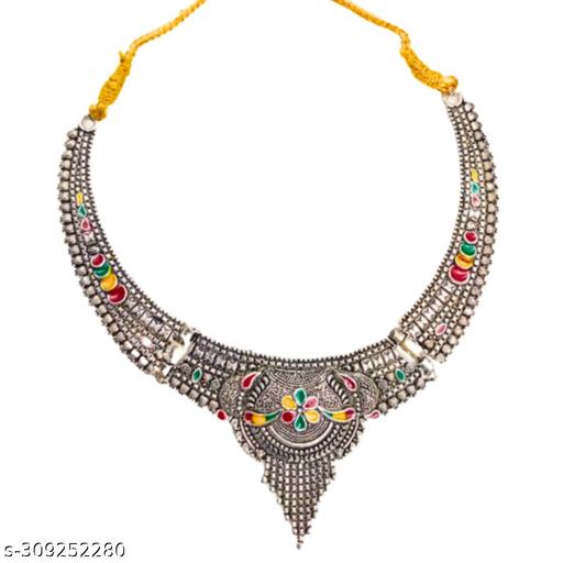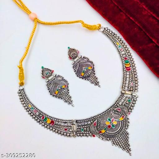 Name: Silver Oxidised colorful design Necklace with Earring Set for girls and women's