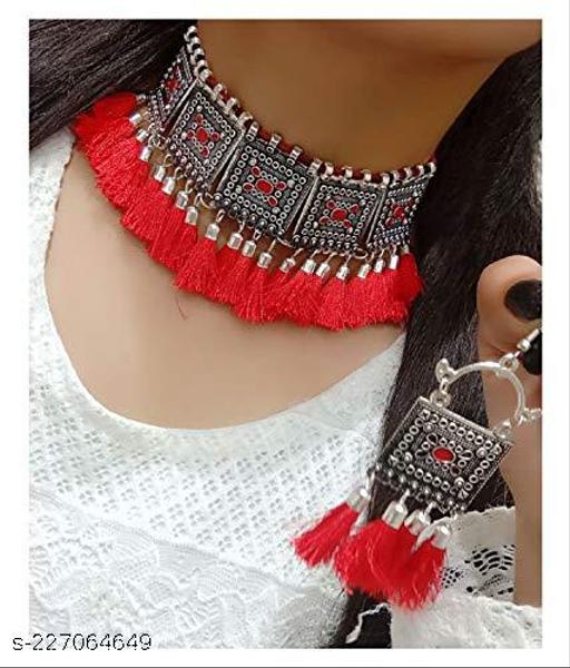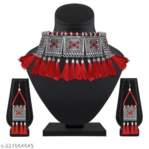 Name: Silver Oxidised Tribal Cotton Thread Antique Choker Necklace Jewellery Set for Women