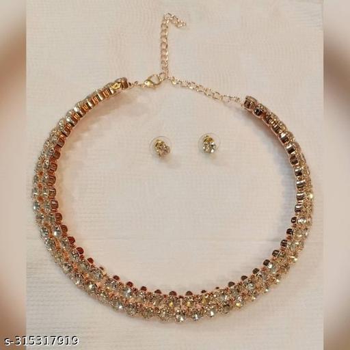 Name: Silver Plated Choker Single Line Big Diamond Necklece For Girls & Women Diamond Silver Plated Alloy Choker