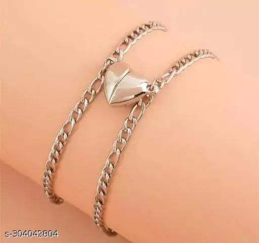 Name: Silver-Toned Stainless Steel Heart Couple Bracelet