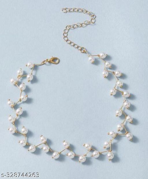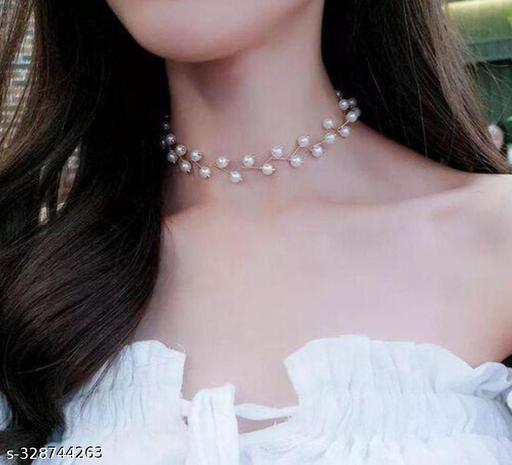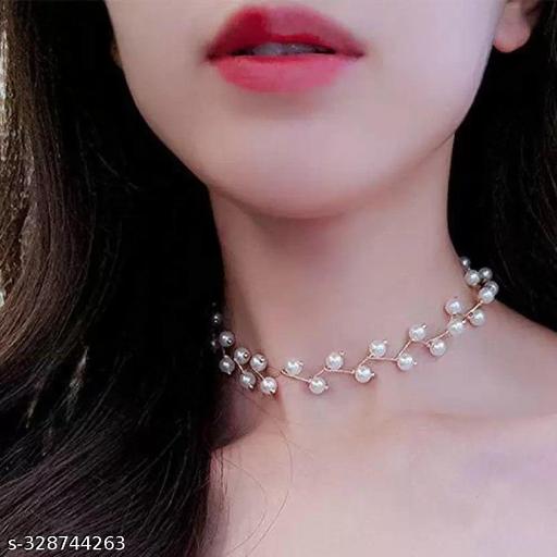 American Diamonds White Pearl Choker Necklace for Women & Girls | CHOKER | Simple Necklace for Girls &Latest Women's Choker Set Beads Chains White Pearls Necklace girl&women
