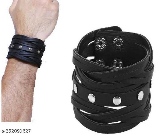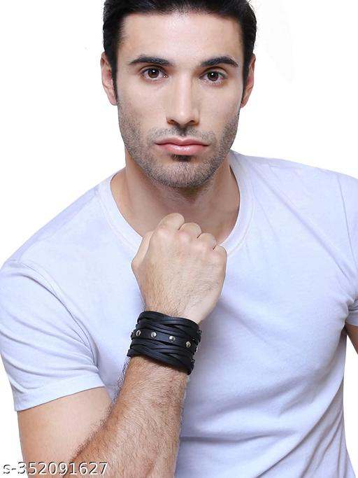Leatherite Broad Metal Wide Gym Style Solid Designer Wrist Band Bracelet Cuff for Boys/men's