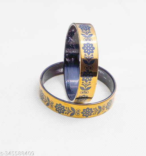 Name: Spidey glass Blue bangles For women/girls gold/green Flower printed pack of 02