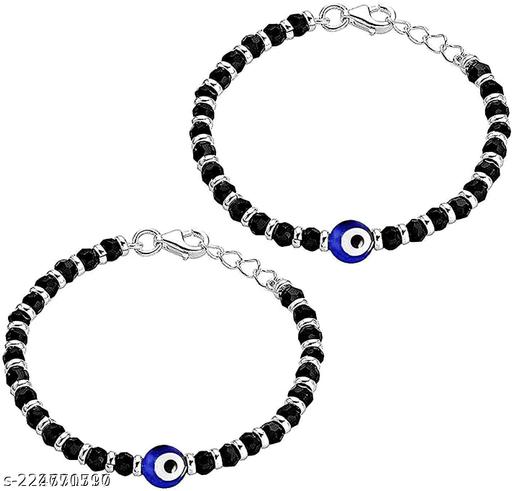 Name: Sterling Silver Charm Evil Eye Nazariya Bracelet with Black & Silver Beads (Crystal) for Baby Boys & Girls(4.5 inch + Adjust) (KIDS EVIL EYE) Pack of 2