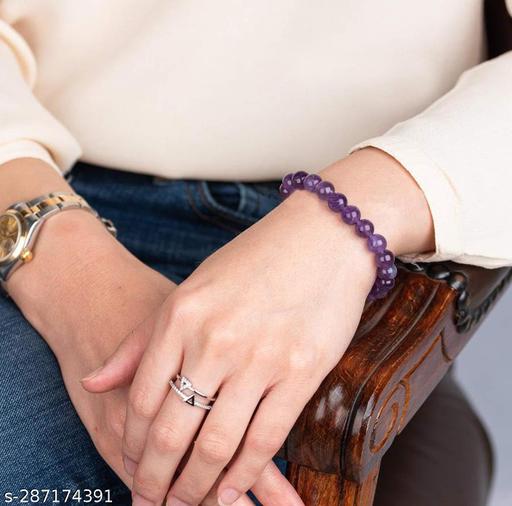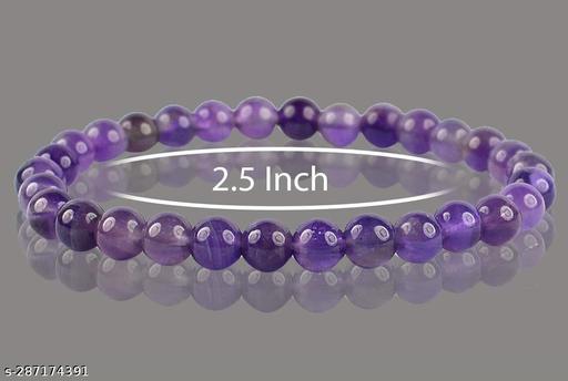 Stylewell (Adjustable Size) Purple Plain 8mm Moti Bead Pearl Natural Feng-Shui Healing Gem Stone Crystal Wrist Band Elastic Bracelet For Women's & Men's
