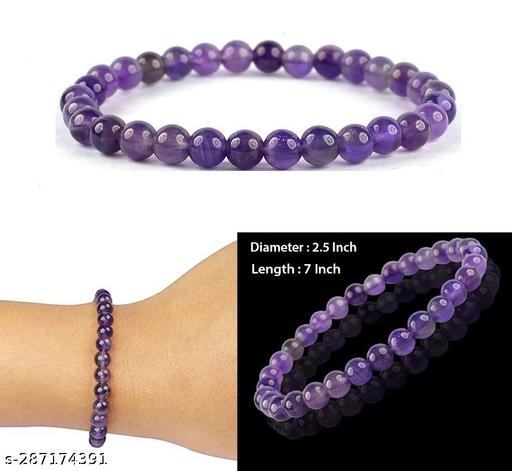Name: Stylewell (Adjustable Size) Purple Plain 8mm Moti Bead Pearl Natural Feng-Shui Healing Gem Stone Crystal Wrist Band Elastic Bracelet For Women's & Men's