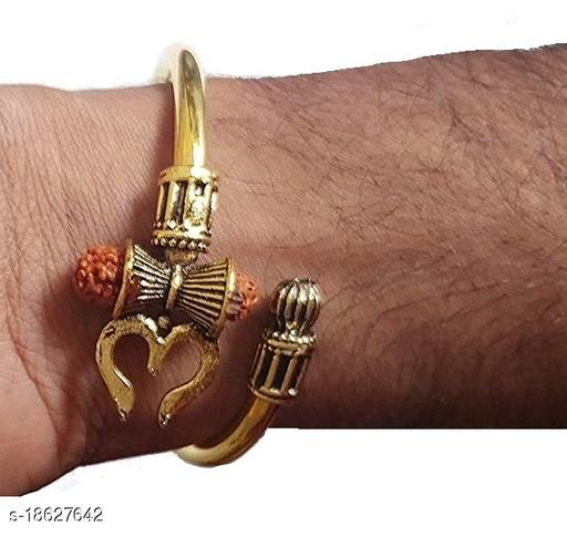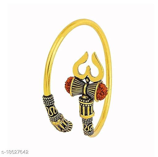 Name: Stylewell (Set Of 2 Pcs) Unisex Stylish (Golden Color) Trending Rudraksha Oxidized Shiva Mahakal Trishul Damroo Designer Bahubali Cuff Kada Wrist Band Bracelets (Free Size)