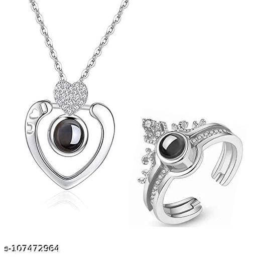 This combo set contains High Quality projection necklace that has a secret hidden message within the central stone and 100 Languages I Love You Ring