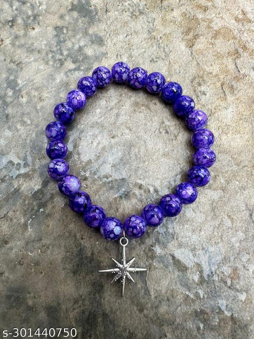 Name: Stylish Artificial Beads Bracelet Purple With Hanging Star Charms For Girls Womens