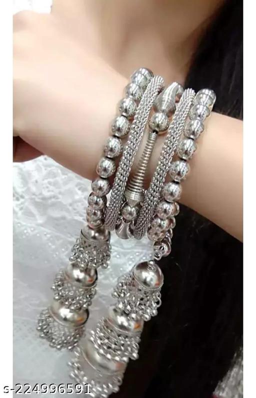 Name: Stylish Bangles for pretty girls | Oxidised Silver Pearl Bracelet | "Stylish Bangle for Beautiful Girls & Women" | "Silver Bangles" | "Bracelet for women" | "Bangles of Girls | Silver Oxidized Bracelet"