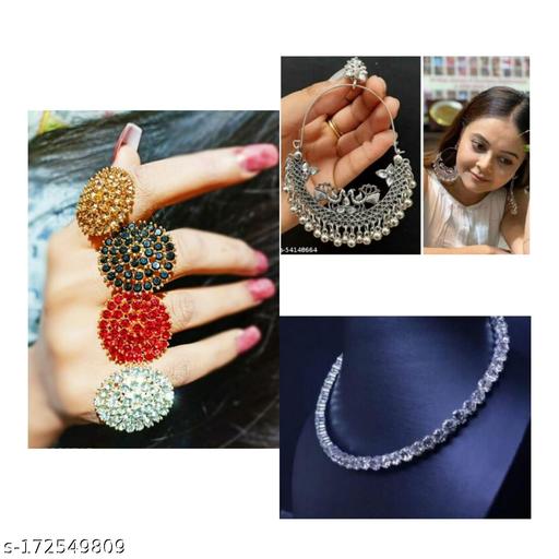 Stylish necklace with earring and multi rings form Karva Chauth special