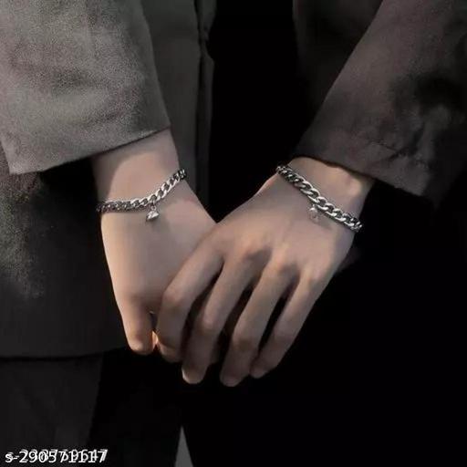 Name: TC Couple Bracelet Magnetic Silver Plated Heart Bracelets RomanticGift Love Couples best Friendship Promise 2 In 1 Wrist Band Link Chain Bracelet