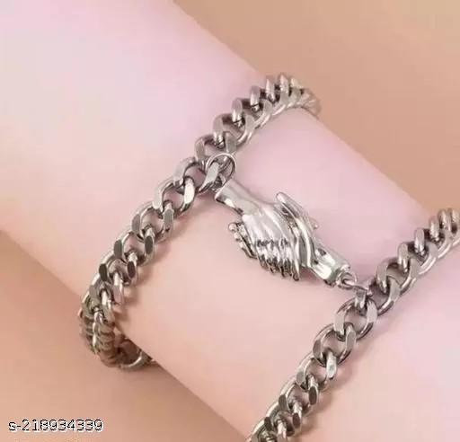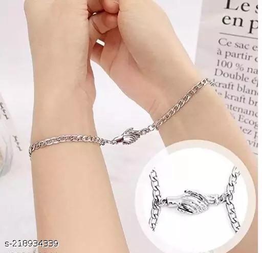 This couple bracelet is made of Stainless Steel Not easy to fade, please rest assured to wear. ?Design?The design concept of this couple bracelets is to adhere to the feeling of alien attraction when couples are in love. The peach heart accessory symbolizes that the hearts of couples are closely attracted to each other. ? Sweet Gift? Magnetic couples bracelet will be a meaningful gift for friends/lovers/couple/boyfriend/girlfriend on Valentine's Day, Wedding, Birthday and Anniversary, Graduation, Christmas, perfect for any occasion