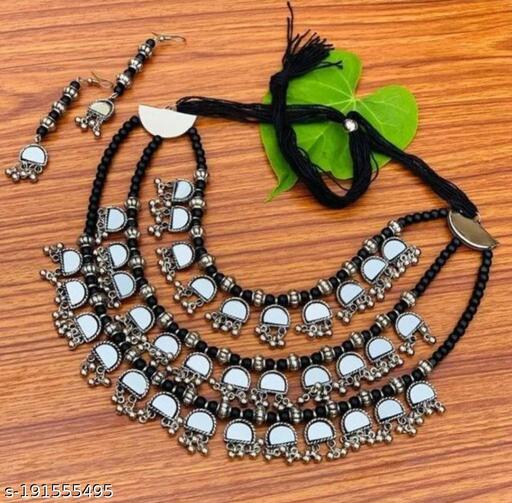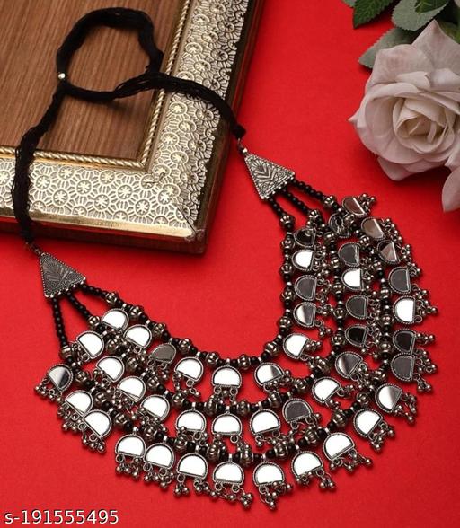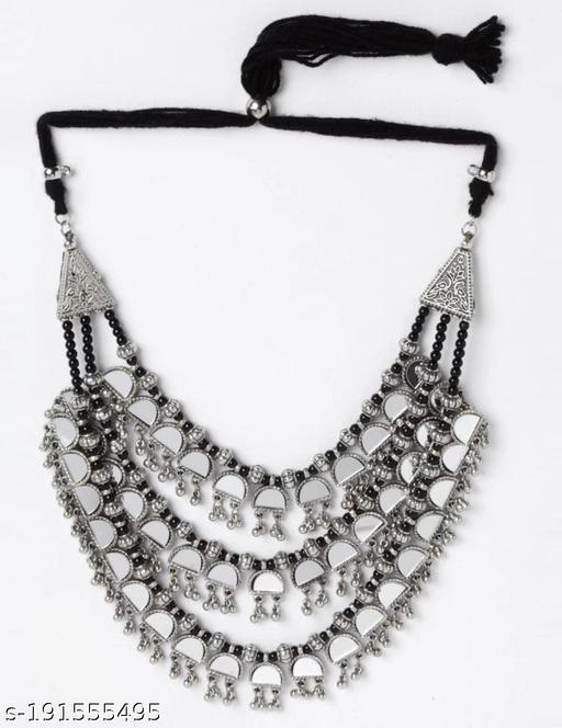 The-1st-choice:-Oxidized-Silver-Color-Mirror-Stud-Choker-Necklace-Set
