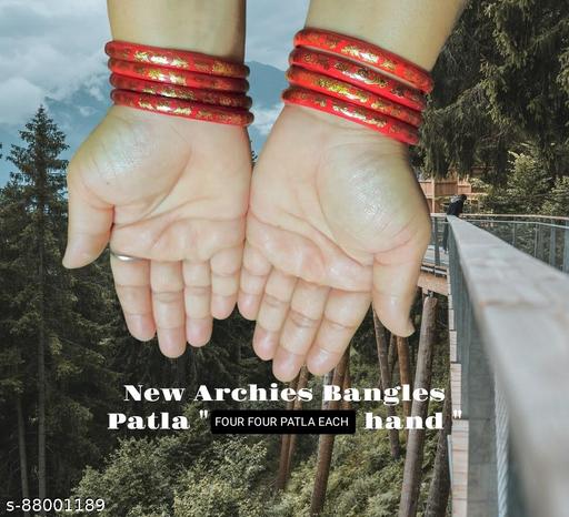 Name: THE ARCHILIES PATLA SET OF 8, GLASS, FEMALE, RED BANGLES