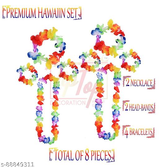Name: Tiptop Decoration Premium Luau Hawaiian Leis Flower Garland Necklace Headband Bracelets (Sets of 8 pieces) (Authentic)