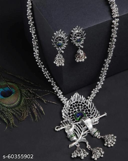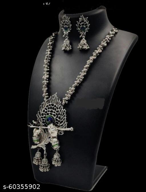 Name: Traditional Mor Pankh Design Oxidized Silver Jewellery Set for Women