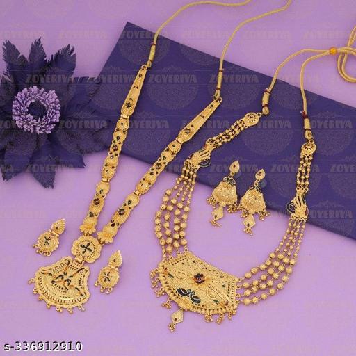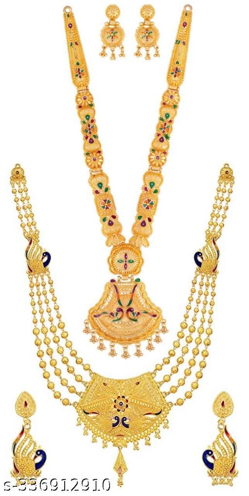 Name: Traditional Precious Metal Brass Gold Plated Yellow Glorious Combo Jewellery Set With Earrings set For Women