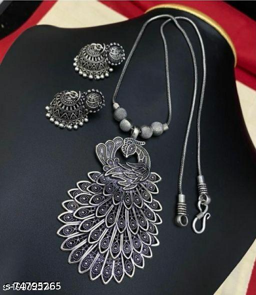 german silver peacock designed chain pendant with matching jhumkas