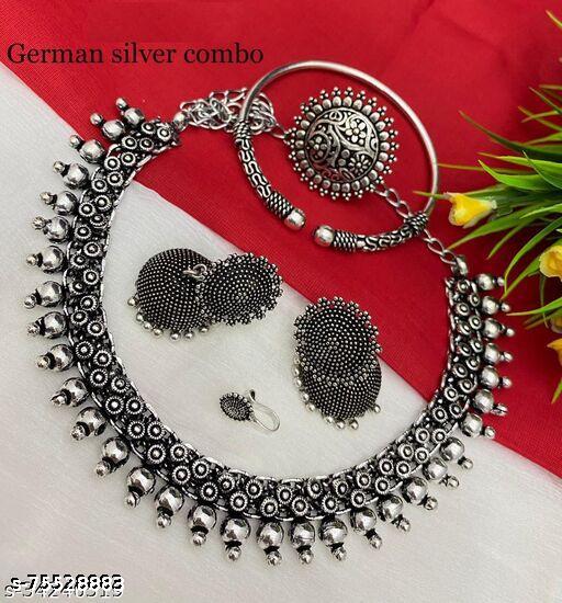 Unique Designed German Silver Choker set,with jhumkas,ring,nosepin and kada