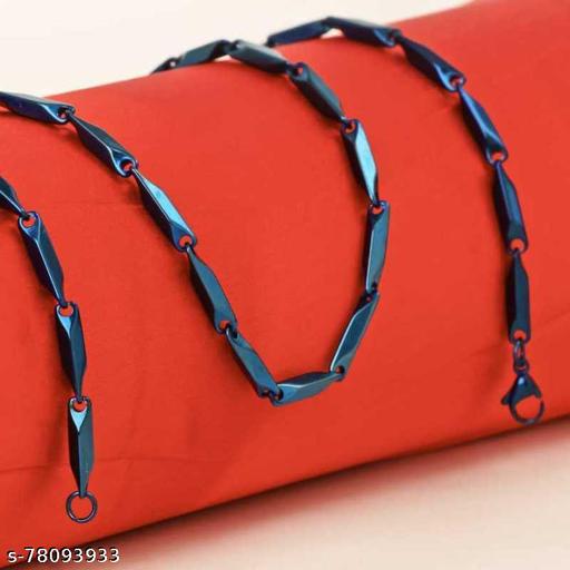 Name: Unisex Stainless Steel Long Rice Design Fancy Chain with 1 Pair Non Pierced Earings (Blue)