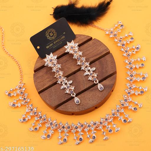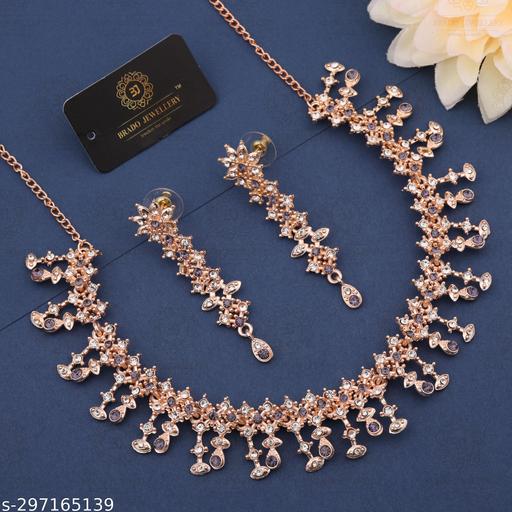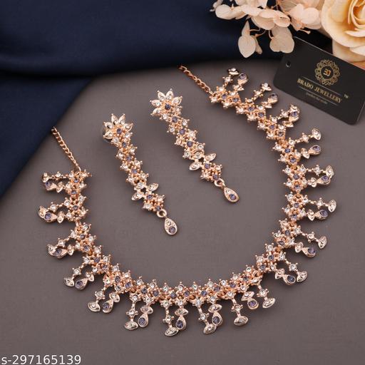 About Product :- Colour :Purple and Rose Gold, Material : Brass, Plating : Rose Gold Plated.In The Box :- Pack of 1 Rose Gold Plated, American Diamond Choker Jewellery Set Necklace + 1 Pair of Earrings. Made With Pure Brass that Why Color Will Not Fade. We Used Heavy Polished Diamond in Earring Also. Its Light Weight To Wear. Skin Will not Damage Bcoz Of use Brass. Come With Brado Branded Box.Color will not Fade.
