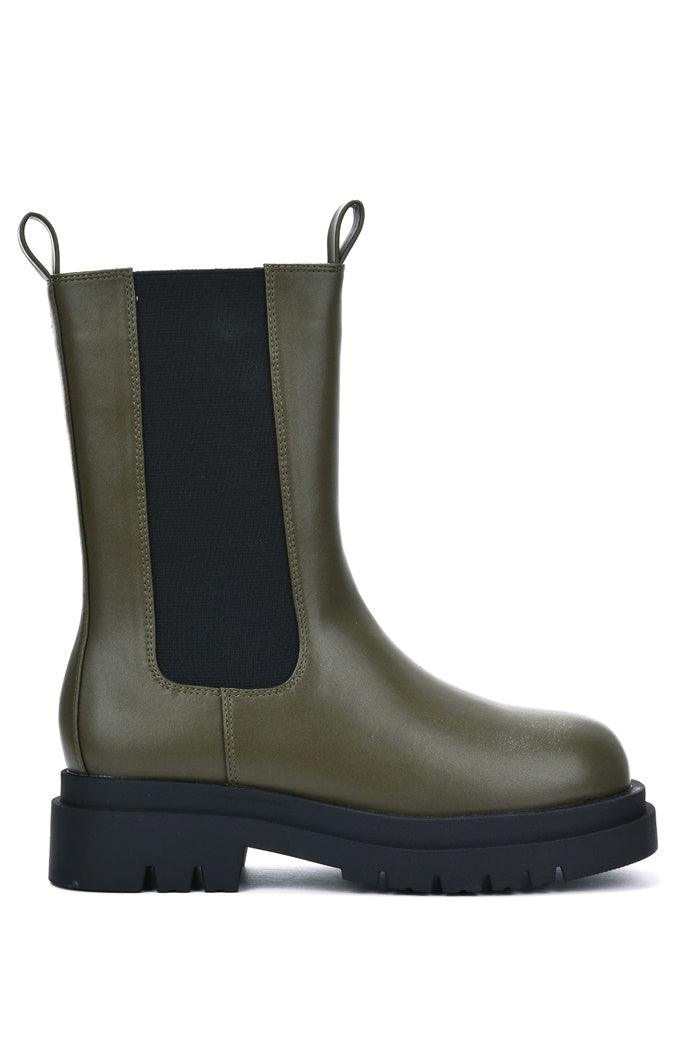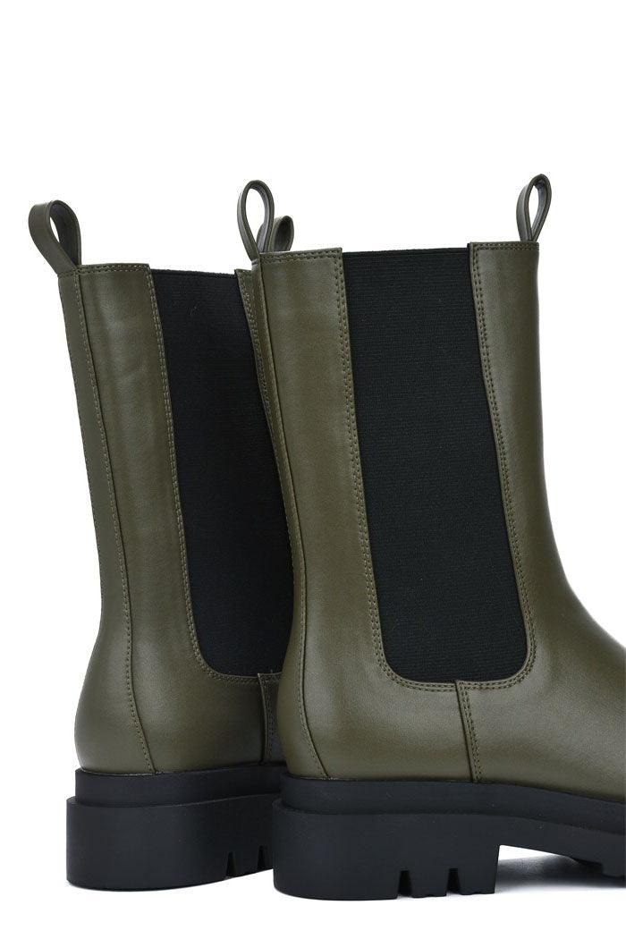 VEGAS - OLIVE - BOOTIES by CAPE ROBBIN round toe chunky lug sole platform booties elastic side panel loop tabs These sultry platform booties will hug your legs in all the right places. With elastic side panels and loop tabs,you'll feel comfortable and sexy all day long. With a thick sole and elevated platform,you'll be strutting your stuff in style.