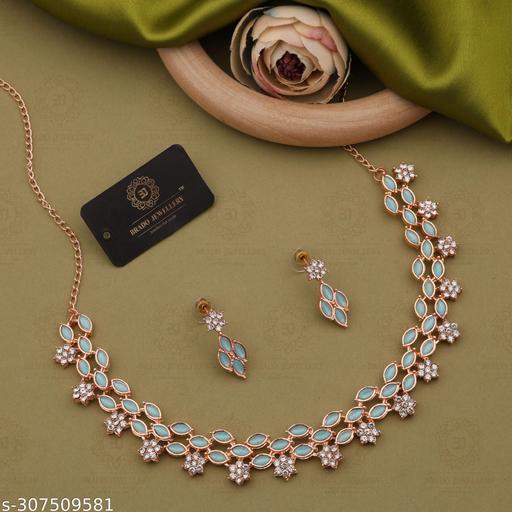 This jewellery set consists of a necklace and a pair of earrings. Rose Gold Plated Necklace, has Artificial Stone, secured with a S Hook closure. A pair of matching Drop Earrings, each secured with a Post and Back Closure.VHV is a celebration of womanhood, a celebration of the life of a confident, down to earth woman who is here in today’s modern world with traditional sensibilities and a whole lot to give and share.VHV brings the best, exquisite design jewelry to you at affordable prices. Our expert eye for craftsmanship, rarity, and quality can be seen through all of our flattering designs. This breathtaking necklace with earrings jewelry set is great for making a fashion statement. It will bring you a lot of compliments.This is a must-have design that can be worn on special occasions to boost up your style factor and enhance the beauty of yours.