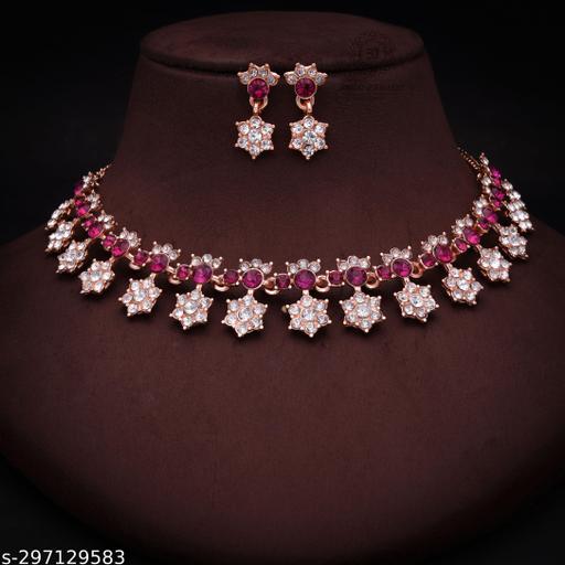 Name: VHV Rose Gold Plated Choker set with 1 pair of Earring for Women and Girls(Necklace with 1 Pair of Earring)