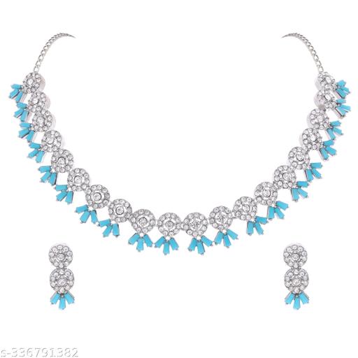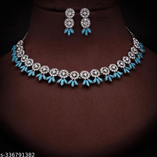 In The Box: - Pack of Unique and Fancy White Gold Necklace with White and Blue American Gems, with A pair of Earrings for Women and girls