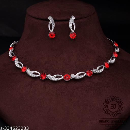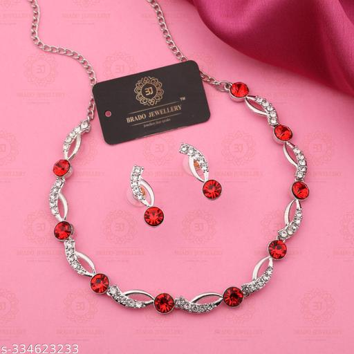 Name: VISAMART Red Stone White gold Necklace with White Gems Jewelry Set with A pair of Earrings for Women and girls